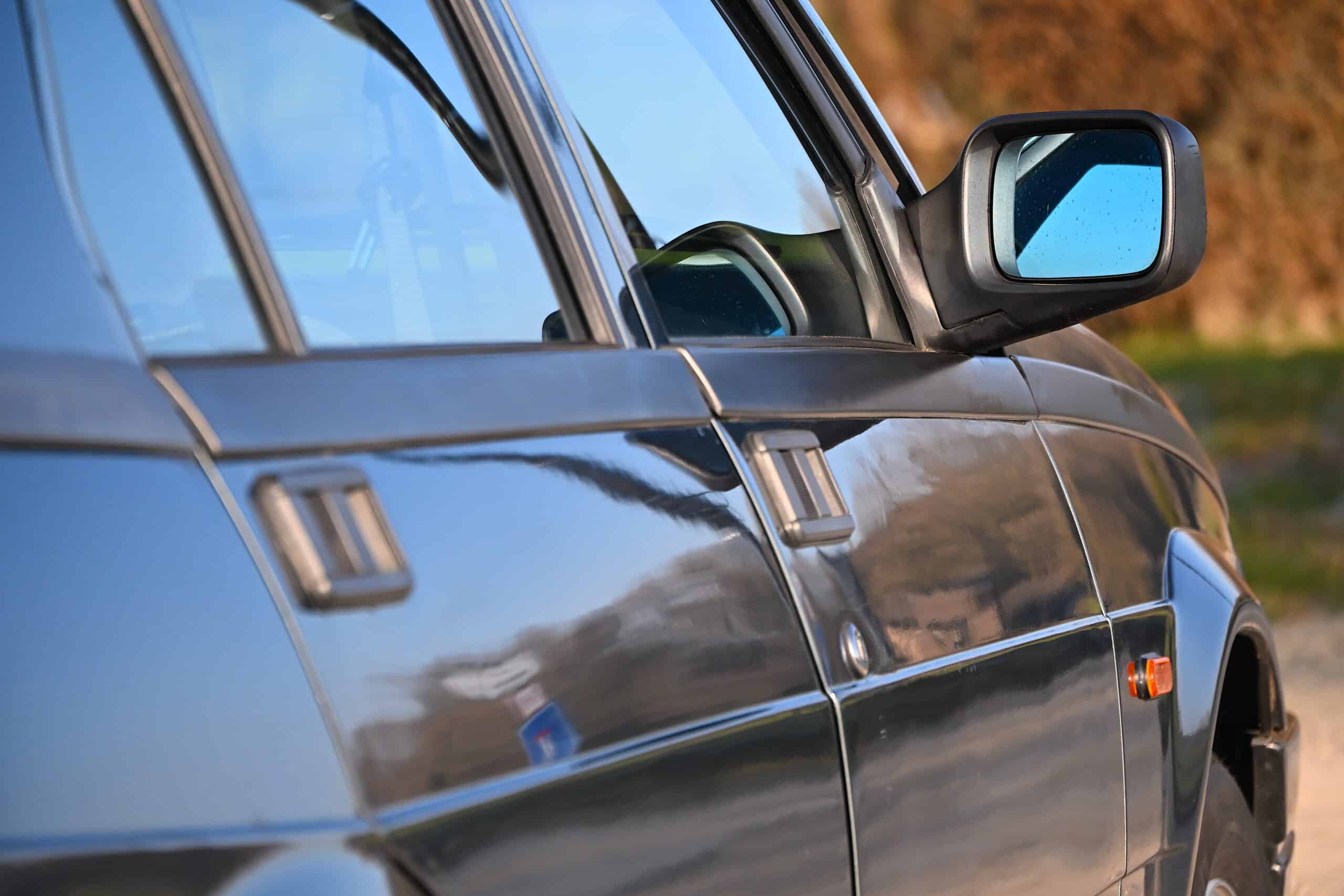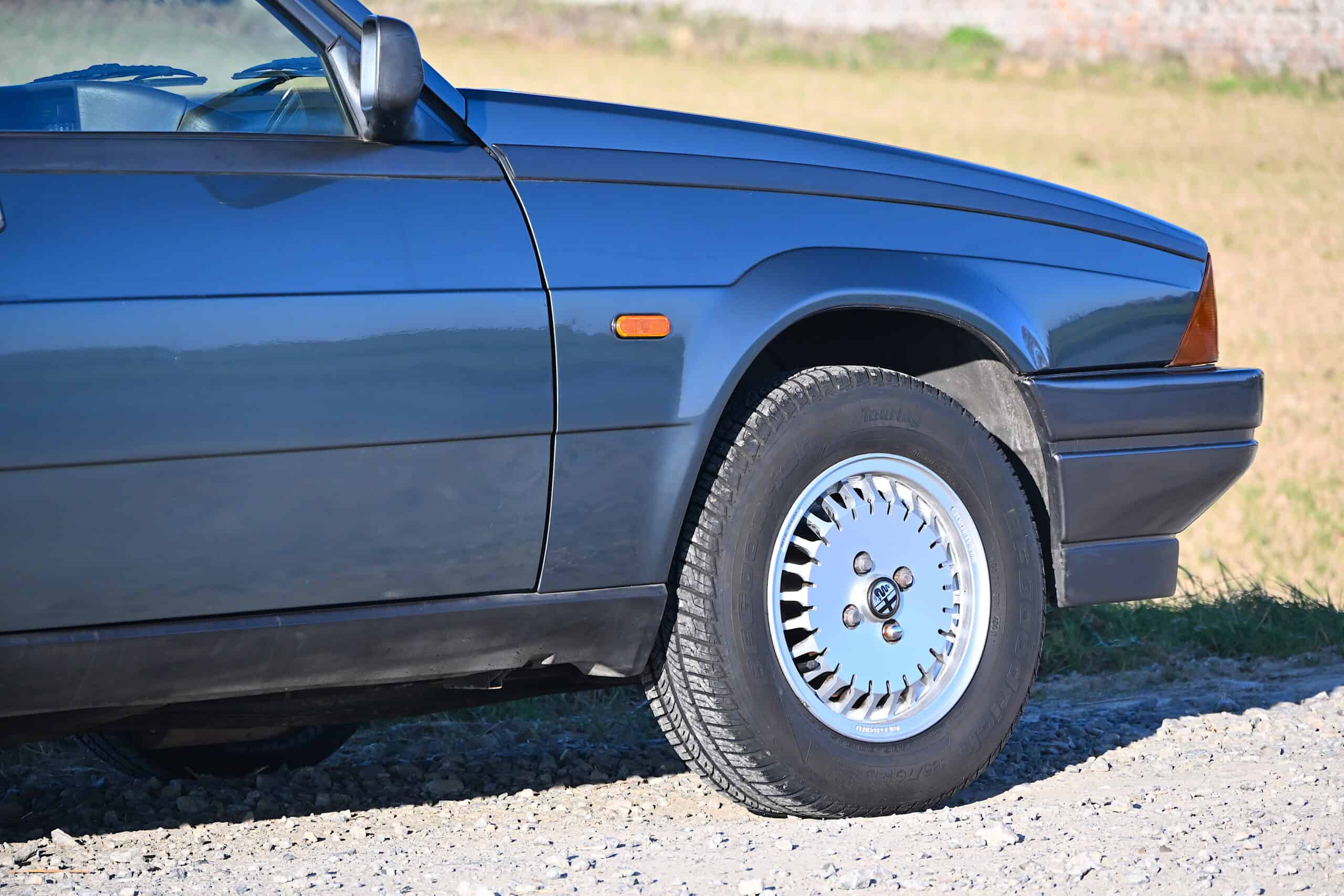 La voiture est chaussée de ses jantes alliage d’origine optionnelles Speedline type téléphone, très recherchées et parfaitement adaptées à l’esthétique du modèle.